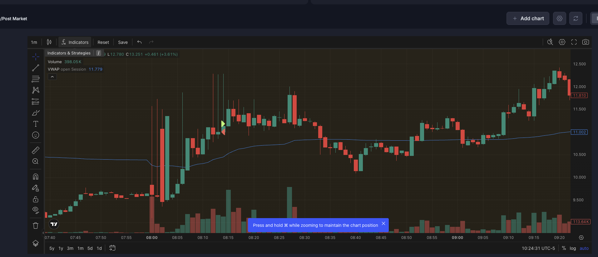 Nail in the coffin. Thought it was finally going to go. Entered too early again. It pulled back, then moved without me. Frustrating end.
