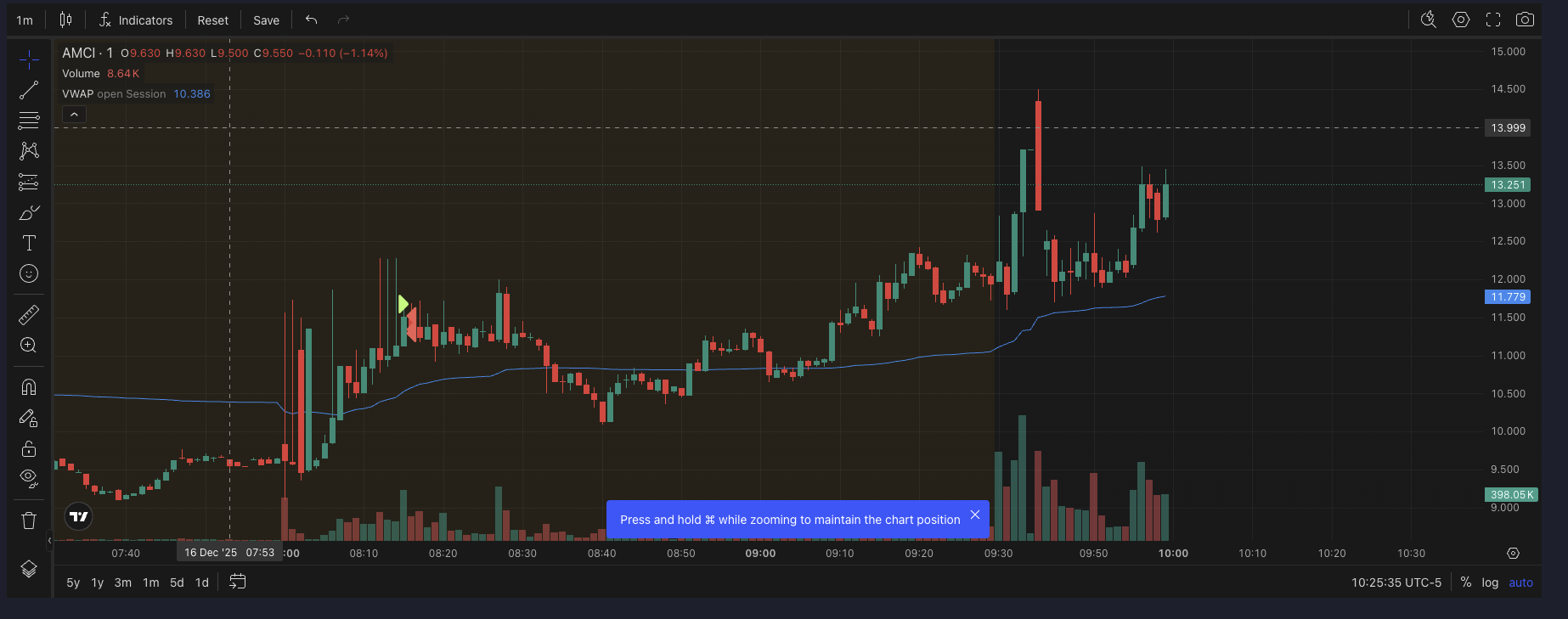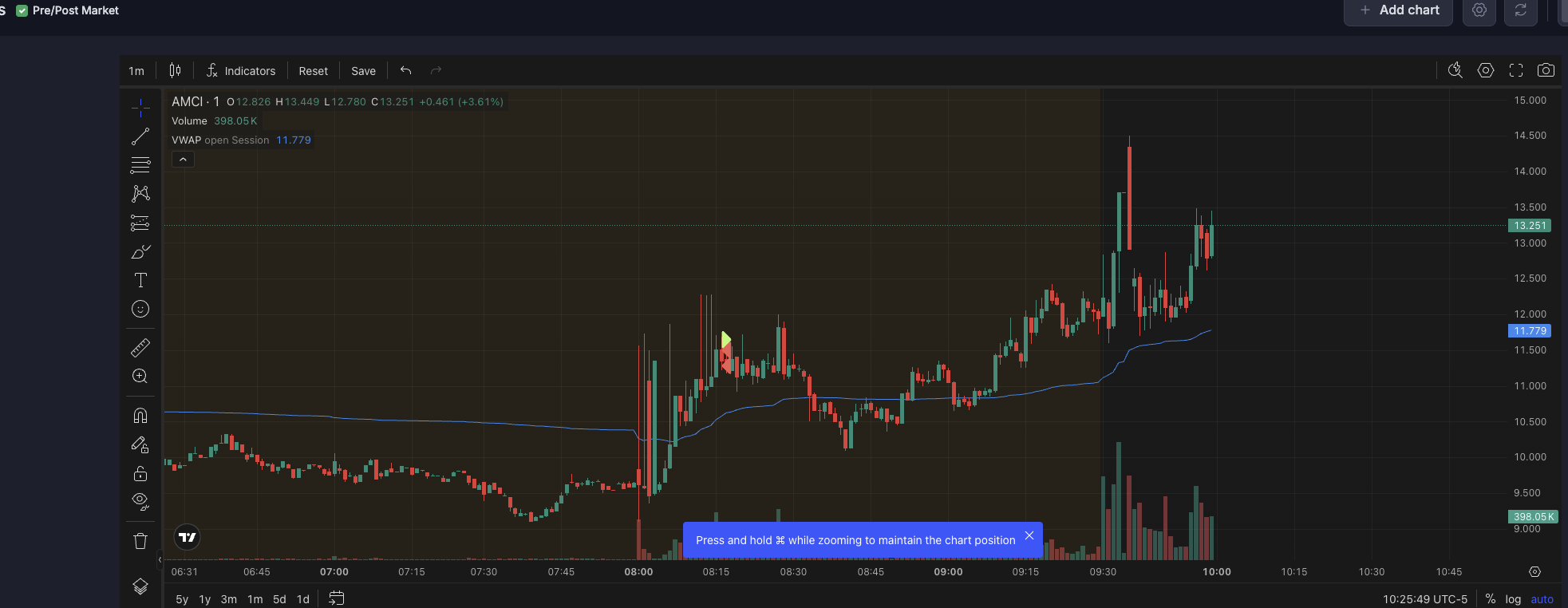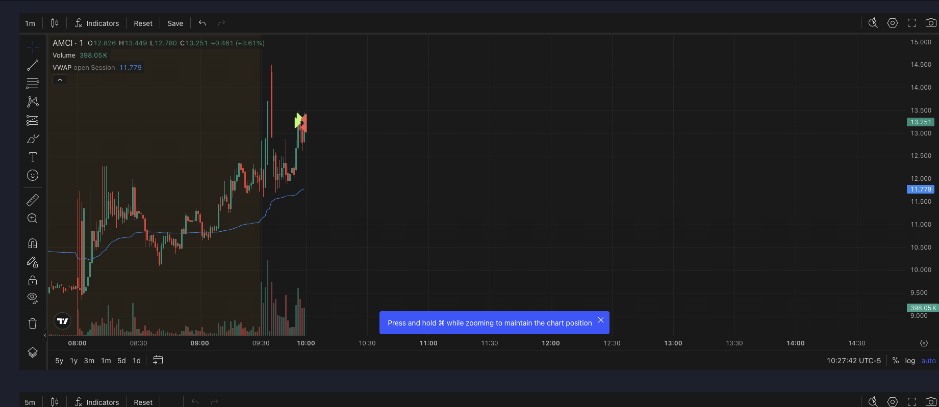 After I had already completed β and mentally closed β my AMCI trading, I re-engaged the same ticker twice in a completely new price zone.