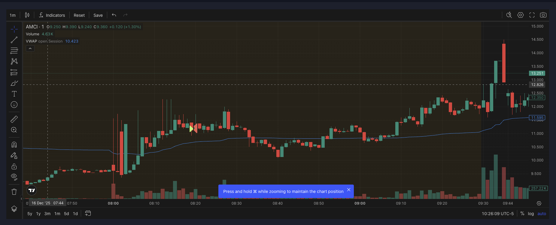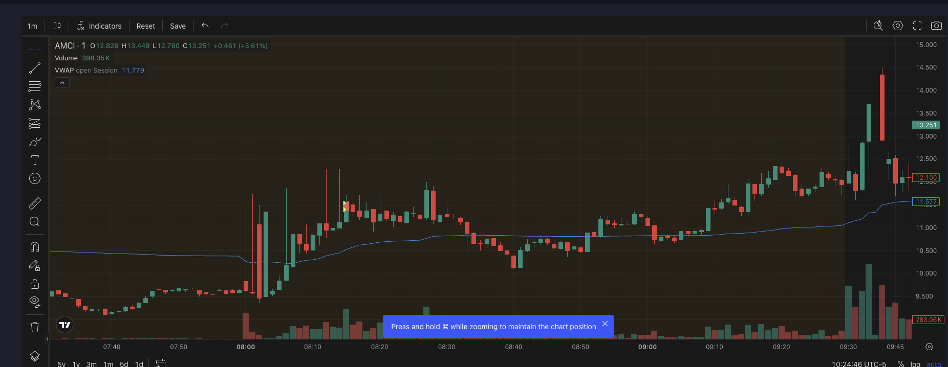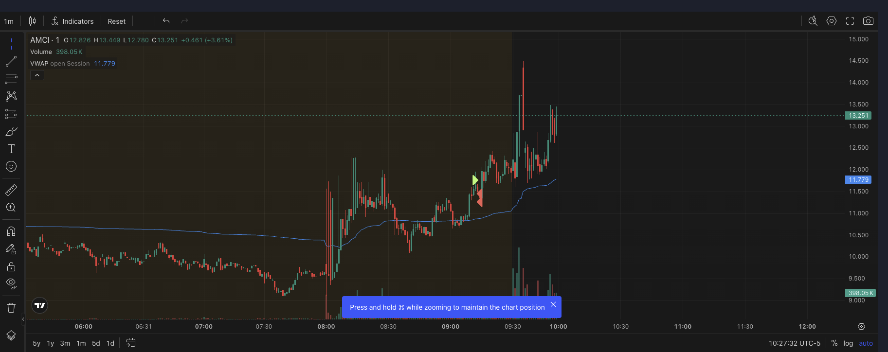 After I had already completed β and mentally closed β my AMCI trading, I re-engaged the same ticker twice in a completely new price zone.