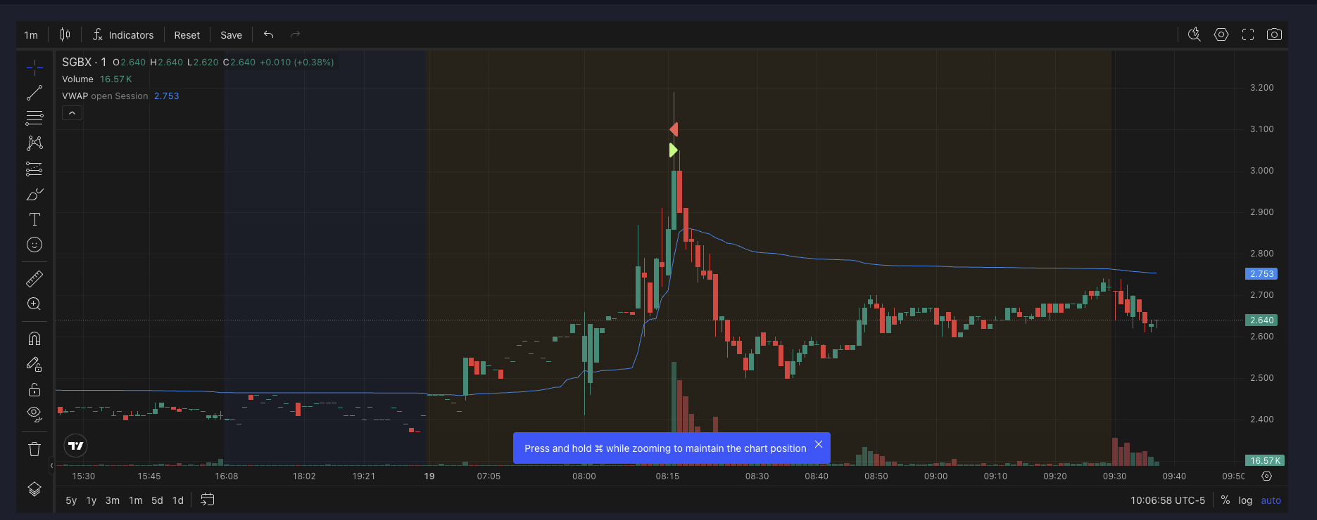 Best read of the day. Bought ~2.06, sold into 2.18. Looked like short covering. Clean execution.