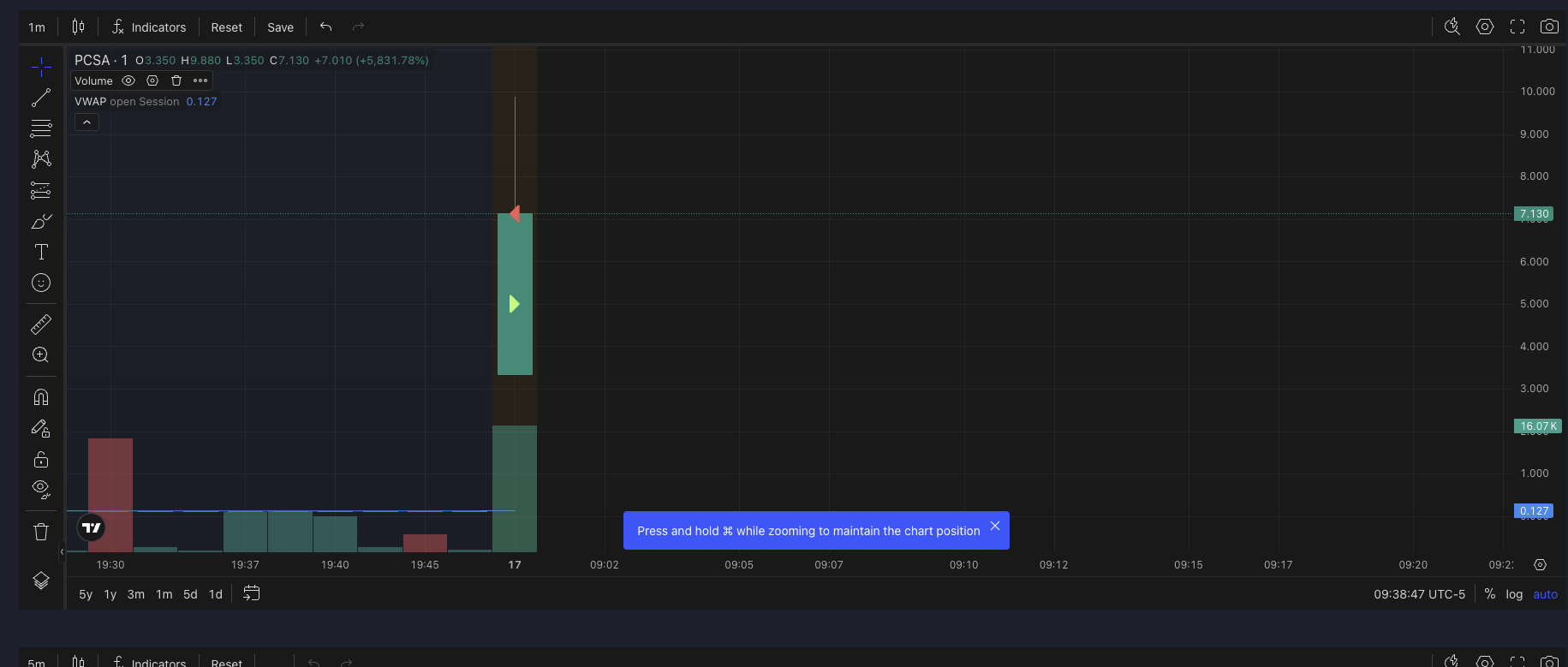 This was a textbook momentum trade. No overthinking, no extra clicks, no drama. Saw it running quick after the halt, was watching carefully, and got the excitement spike for a quick $2 per share scalp. took it with only 5 shares because was high risk. Dropped fast.