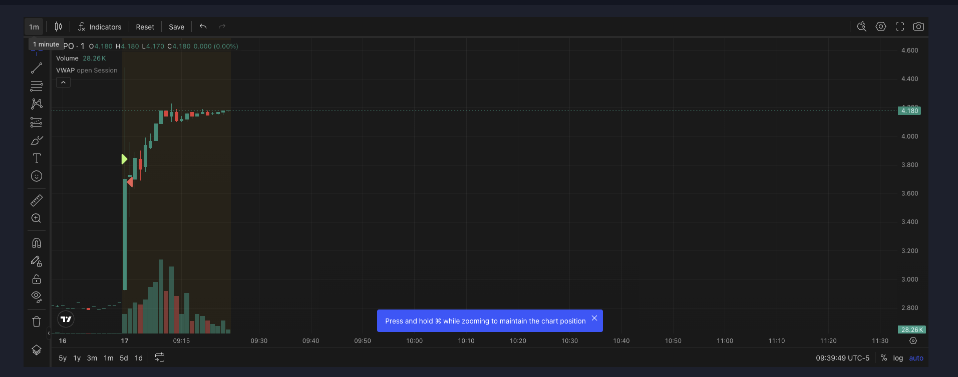 09:05:16 — Sell 5 @ 3.68