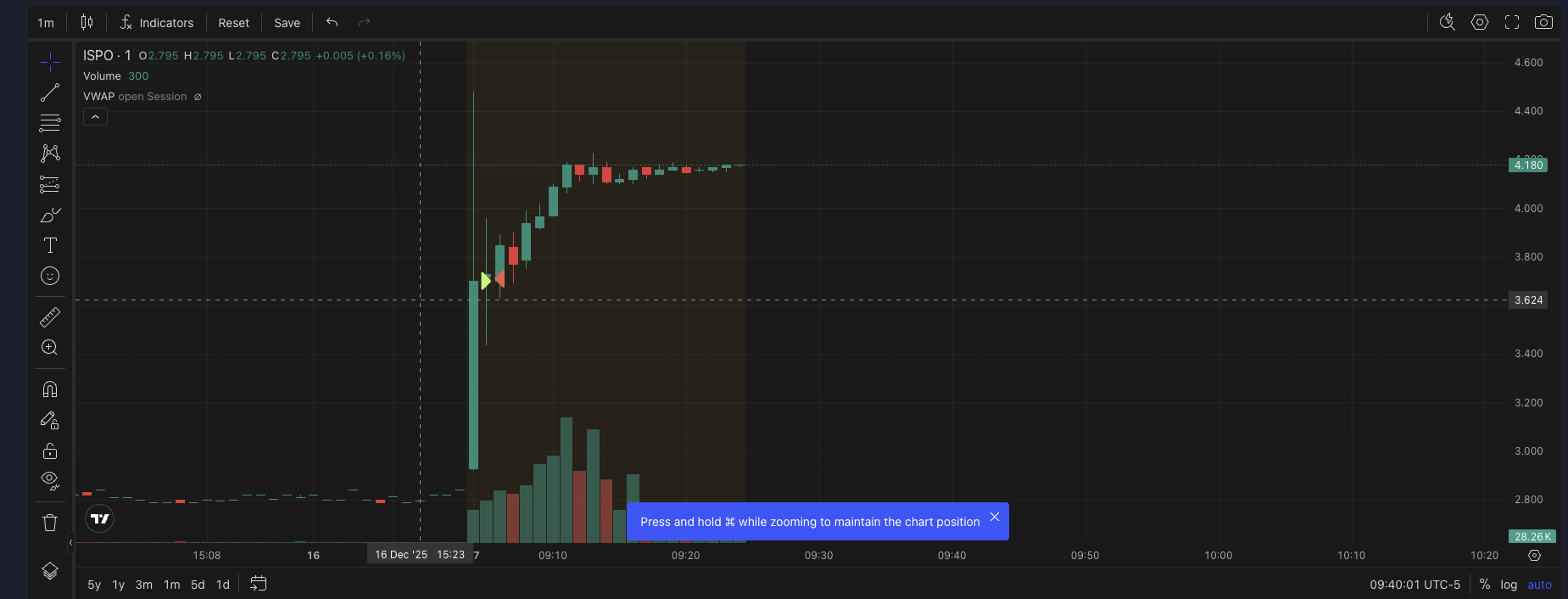 09:04:55 — Buy 5 @ 3.84