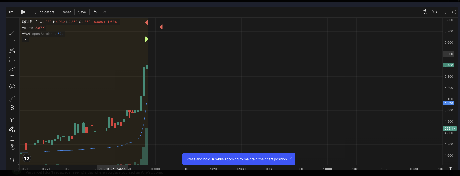 2 trades Β· micro-sized Β· Live Gave myself room for up to 500 shares, only used 60 shares 07:48β09:02 AM