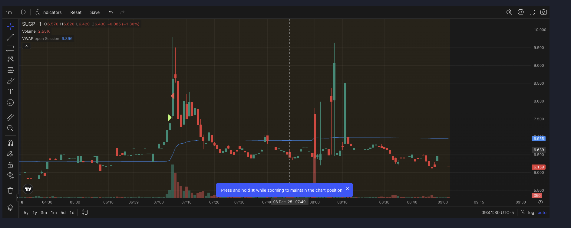 SUGP (1 trade) β Total: Solid micro pullback scalp