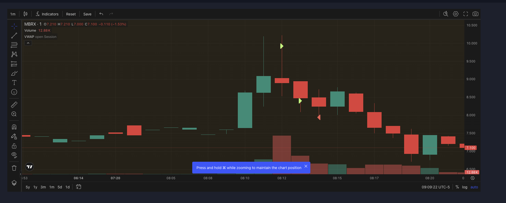 MBRX — Top-ticked and repaired