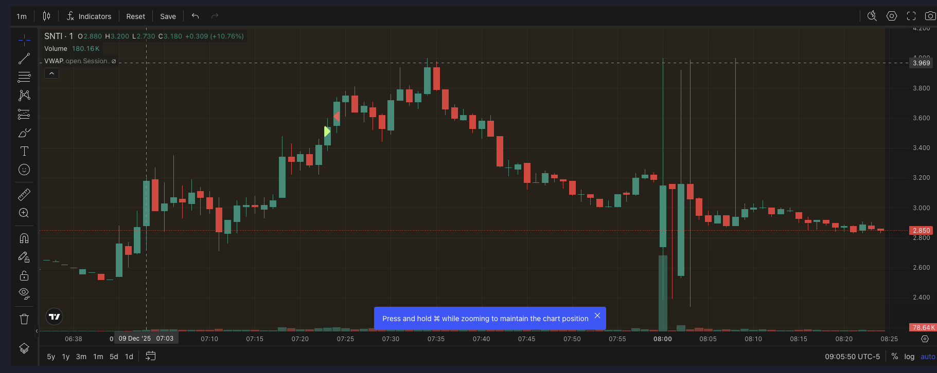 SNTI — +$0.50