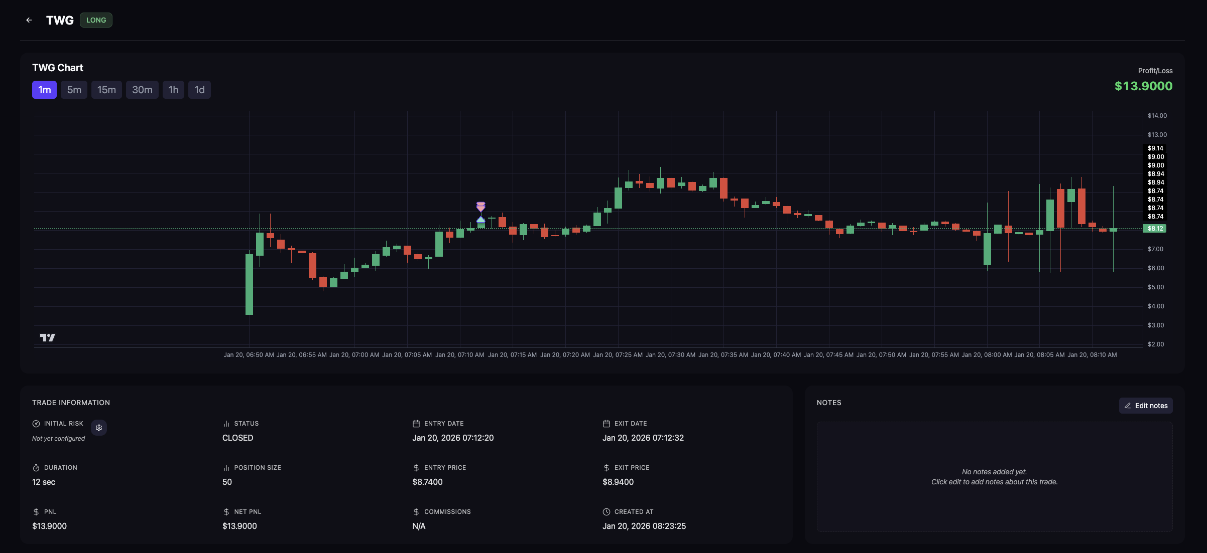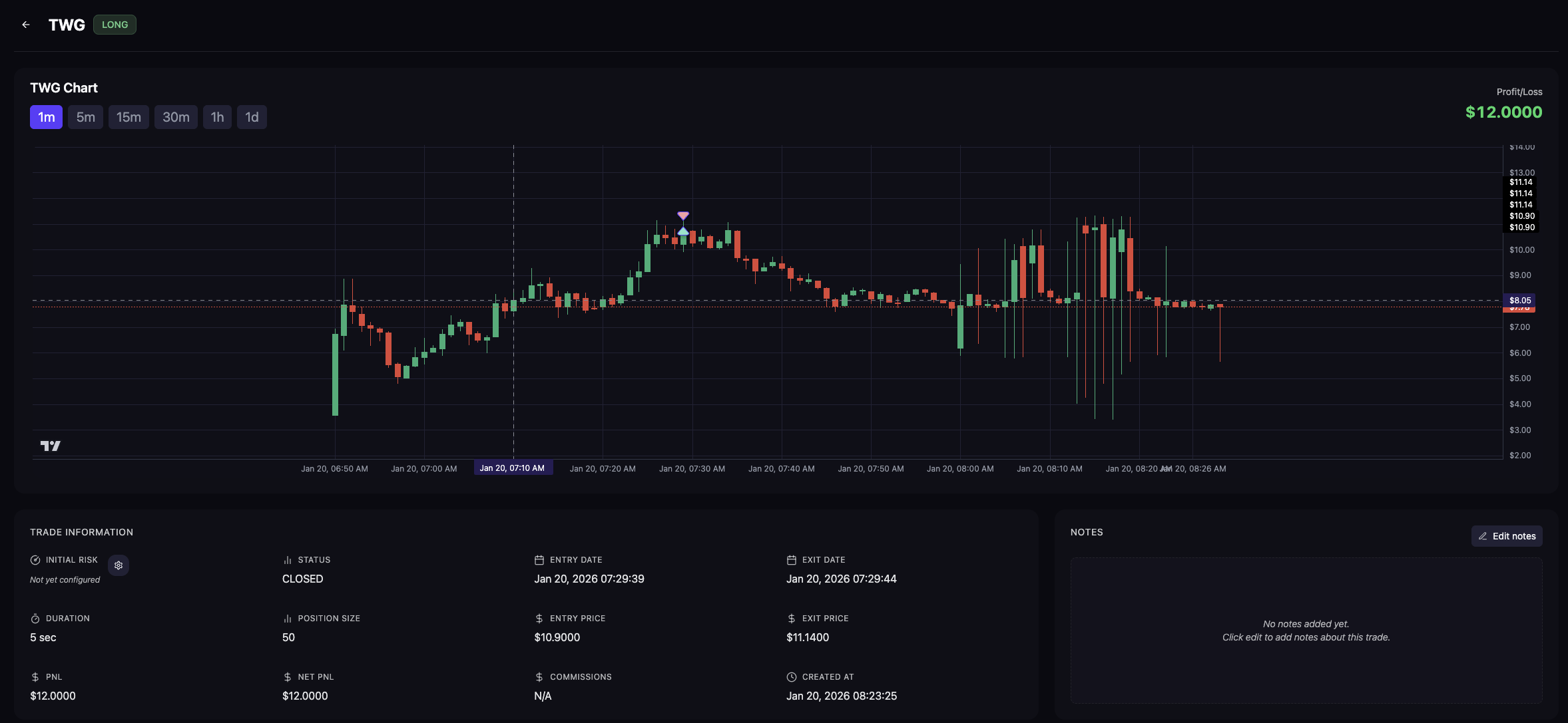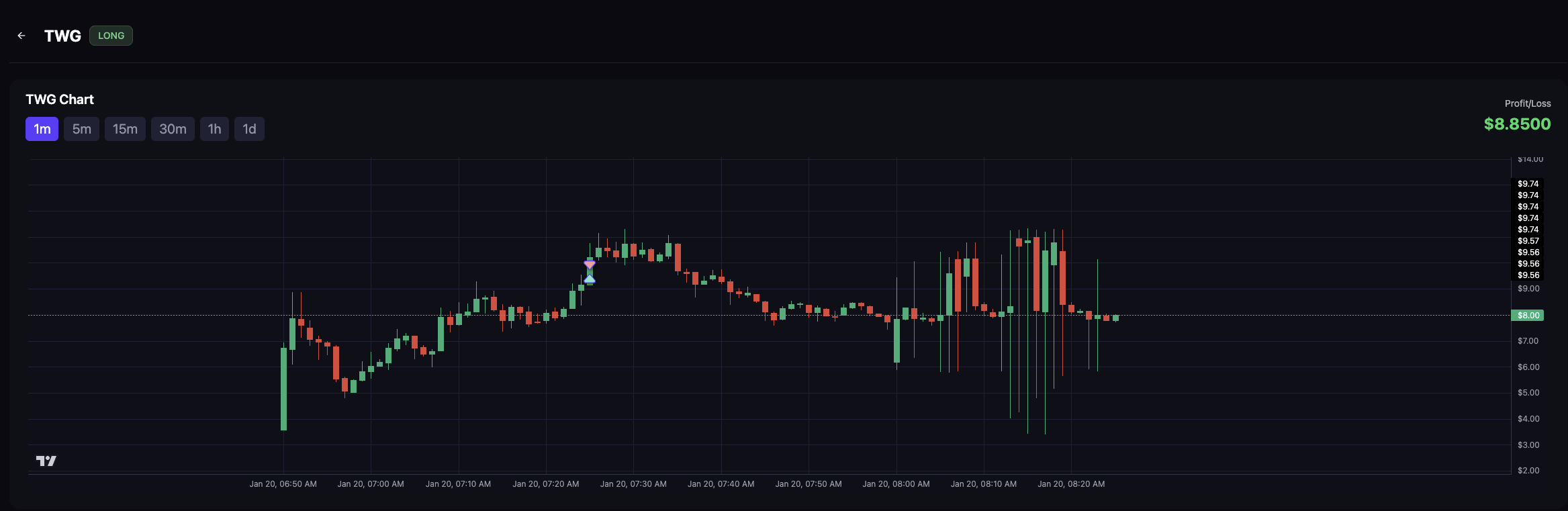 TWG was extremely whippy and difficult to time cleanly. I treated it strictly as a breakout-or-bail situation. If it didnโt go immediately, I exited without hesitation. I was willing to re-enter repeatedly, but only when the timing and structure made sense.