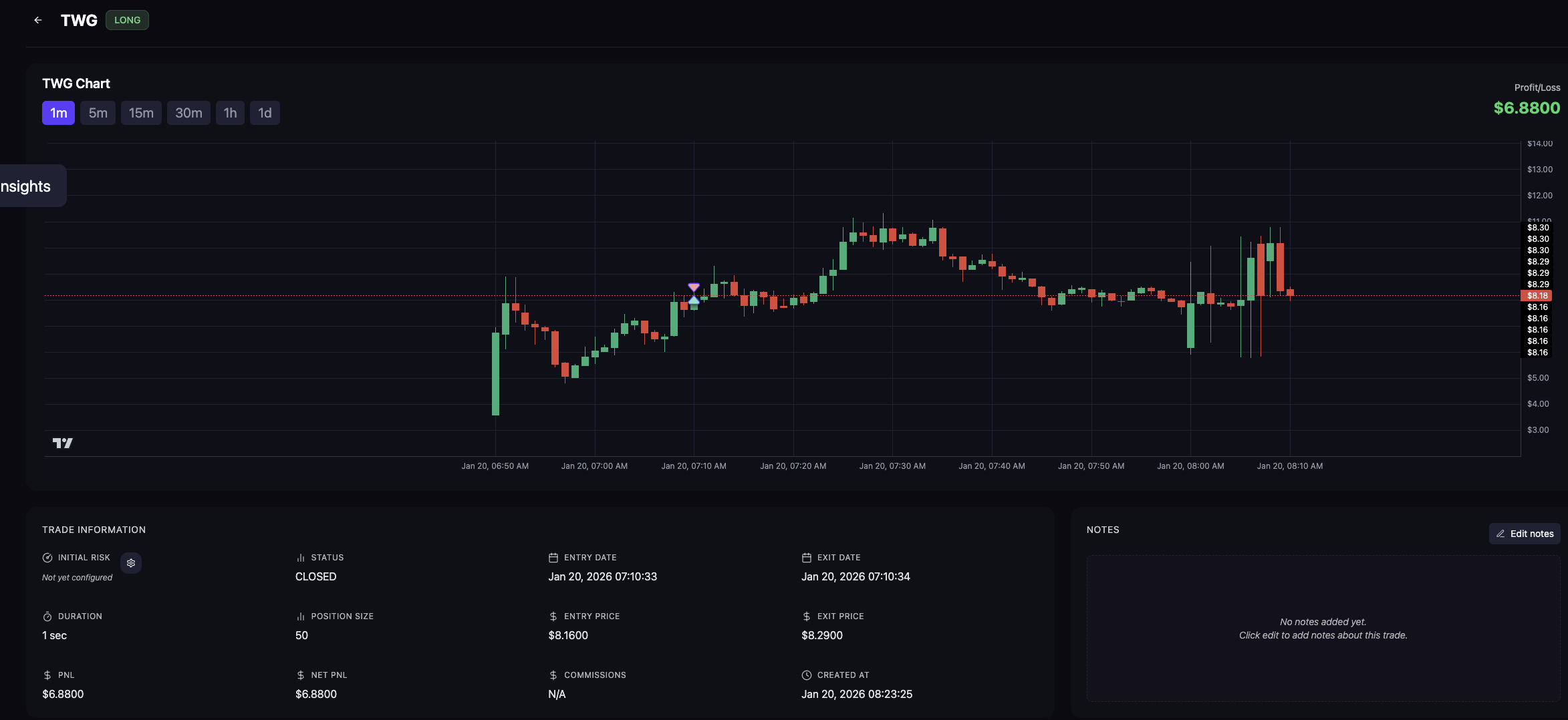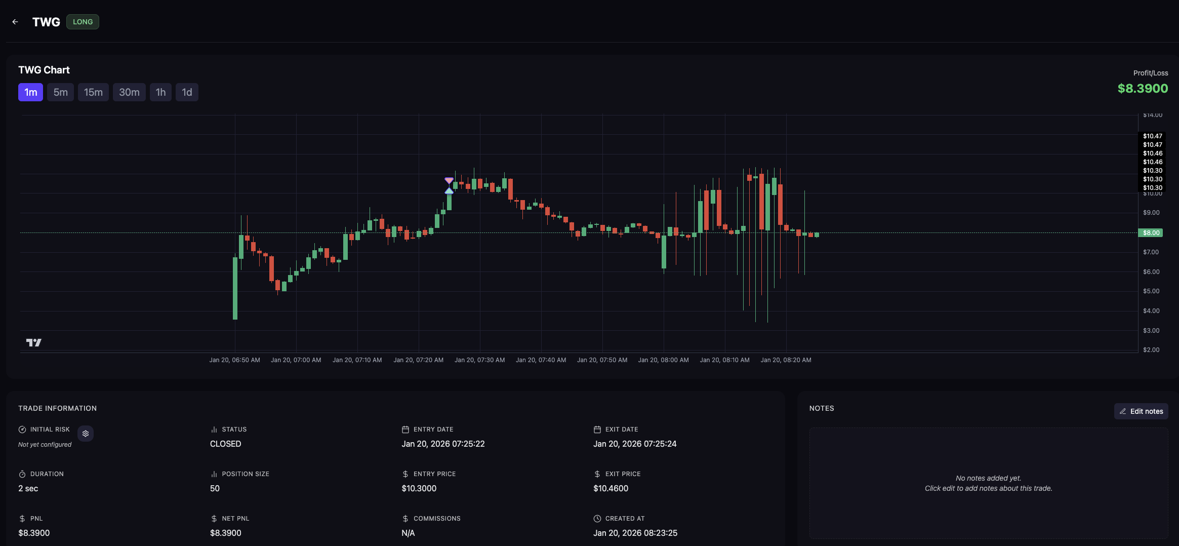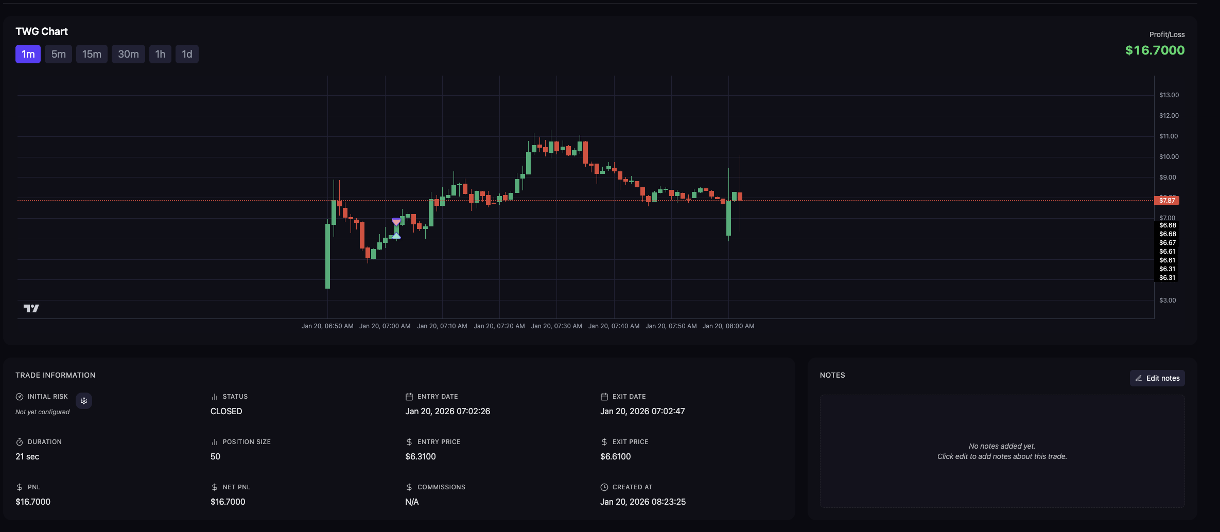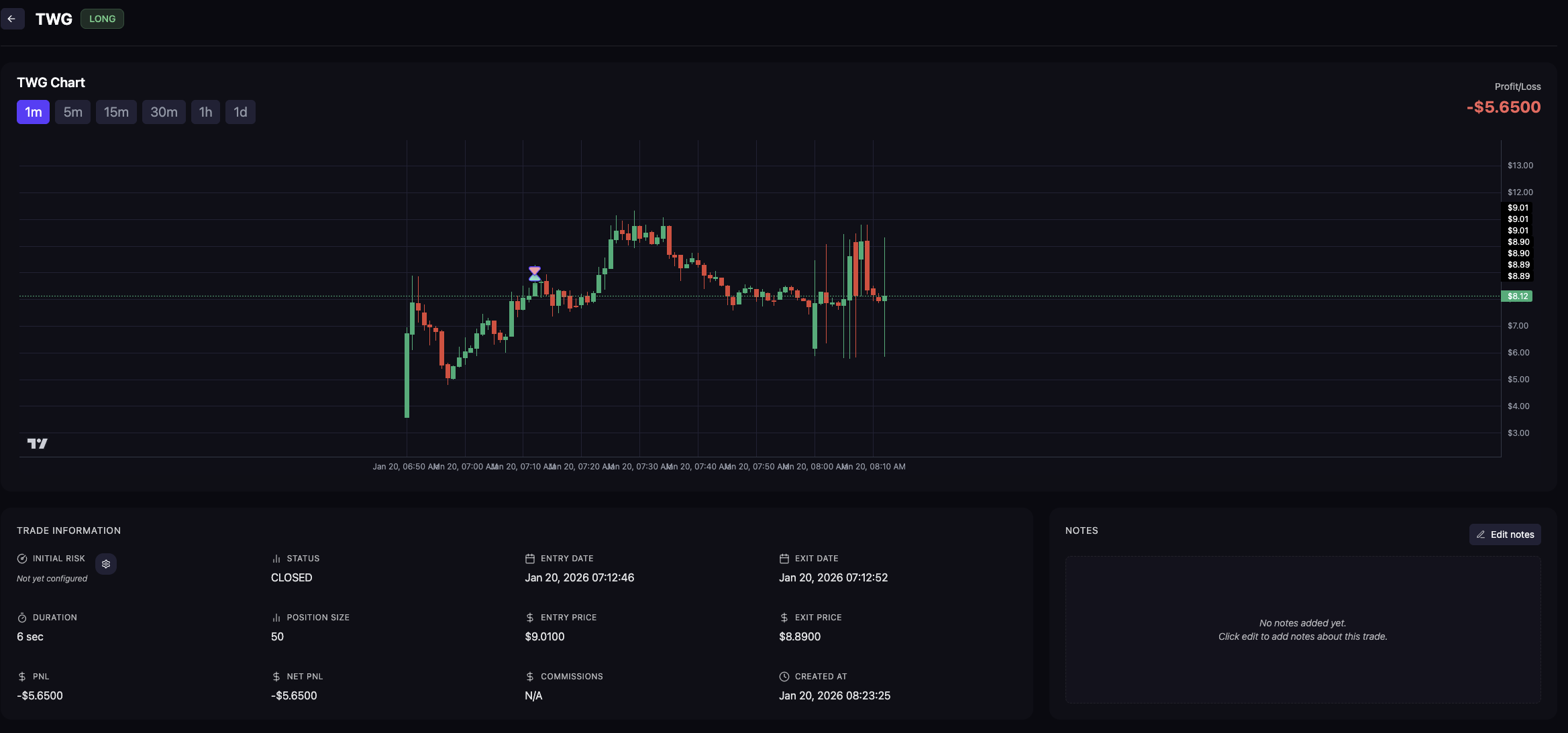 TWG was extremely whippy and difficult to time cleanly. I treated it strictly as a breakout-or-bail situation. If it didnโt go immediately, I exited without hesitation. I was willing to re-enter repeatedly, but only when the timing and structure made sense.