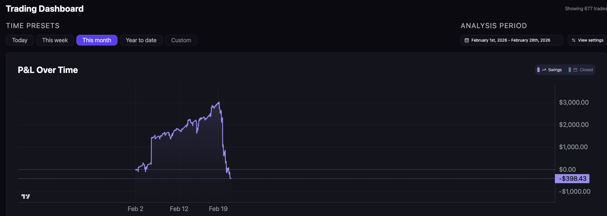 I was up $3,000 on the month.